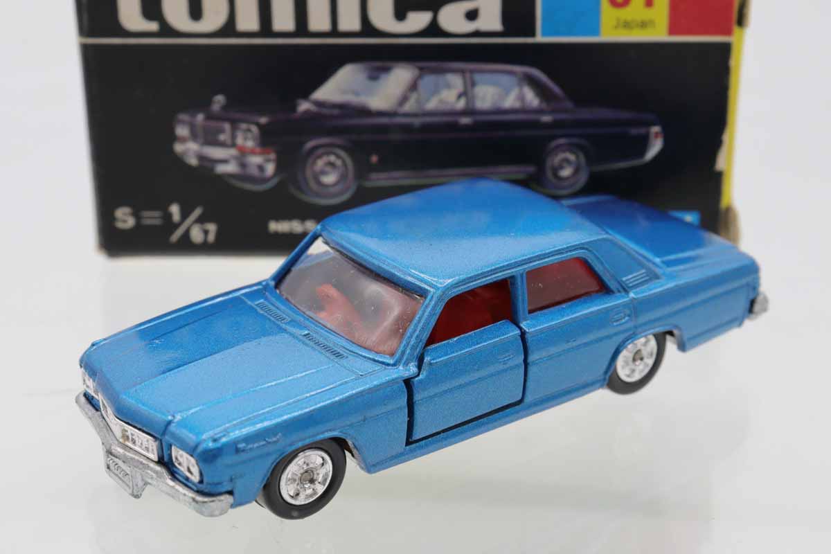 トミカ 黒箱★81★日産プレジデント (青) ※ボンネット塗装少浮き・ルーフスレ・箱少スレ、少汚れ、つぶれ・フタめくれ・買取品・現状渡し