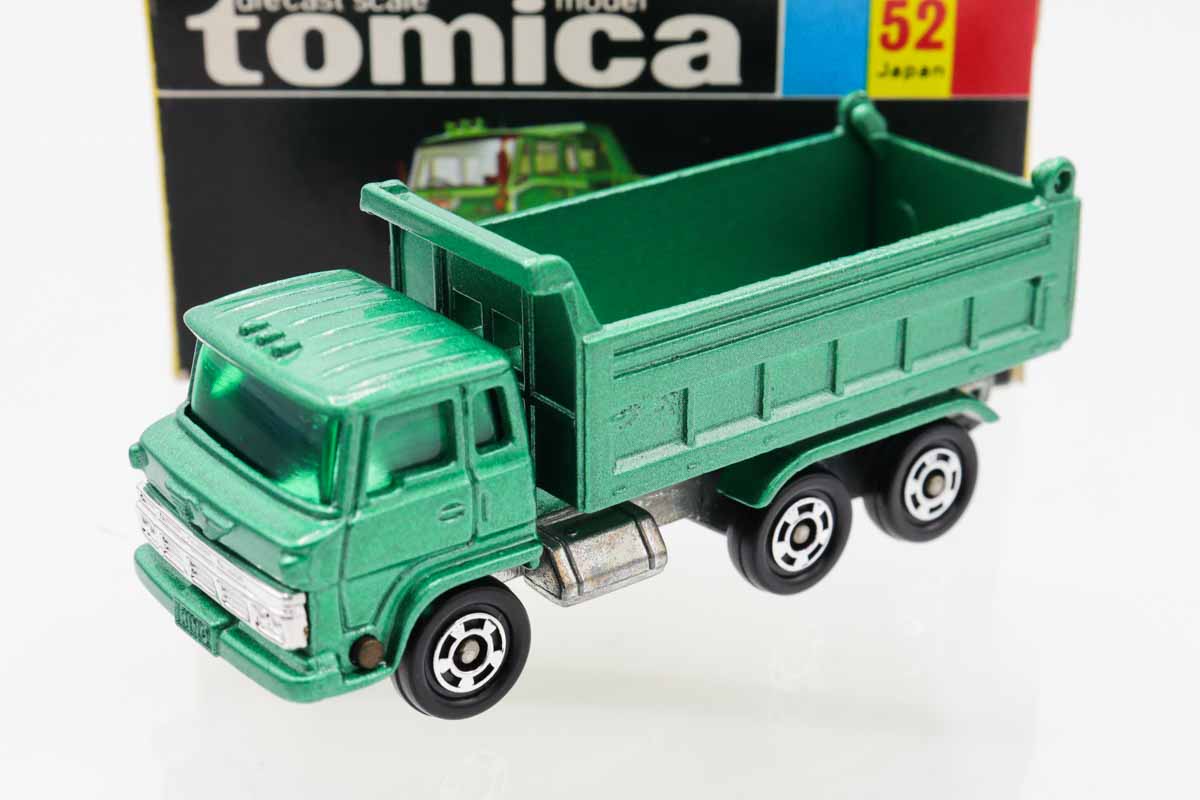 トミカ 黒箱★52★日野ダンプ・カー (緑) ※荷台塗装少荒れ・エンブレム塗装極少剥げ・箱少スレ、少汚れ・フタ爪跡・買取品・現状渡し