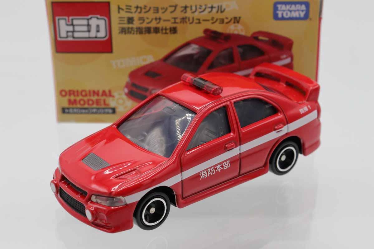トミカ 特注・その他★★三菱ランサーエボリューションIV 消防指揮車仕様 ※トミカショップオリジナル・フタヨレ・買取品・現状渡し