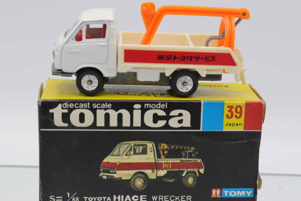トミカ 黒箱★39★トヨタハイエース レッカー ※1F/2Cホイール・塗装少剥げ・箱スレ、ヨレ・フタ破れ、爪跡、値札剥がし跡・買取品・現状渡し