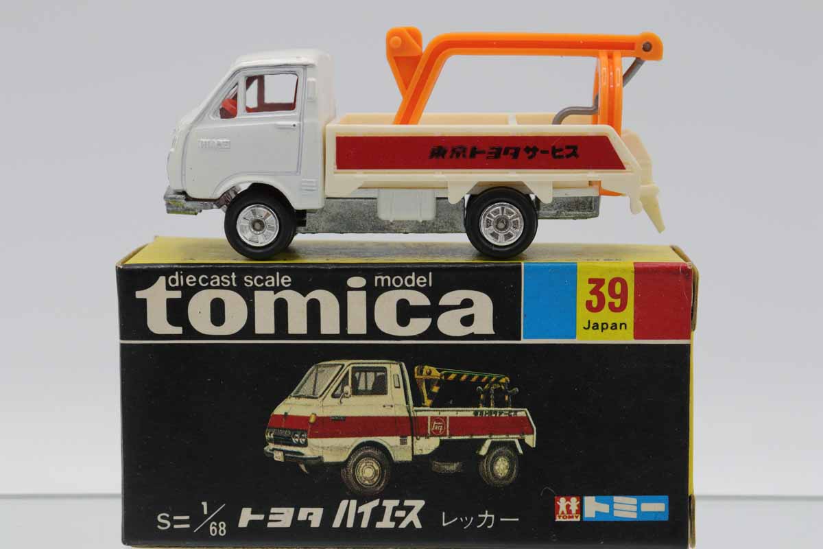 トミカ 黒箱★39★トヨタハイエース レッカー (白) ※1E/2Bホイール・ドアノブ塗装少剥げ・箱汚れ、凹み・フタめくれ、書込・買取品・現状渡し