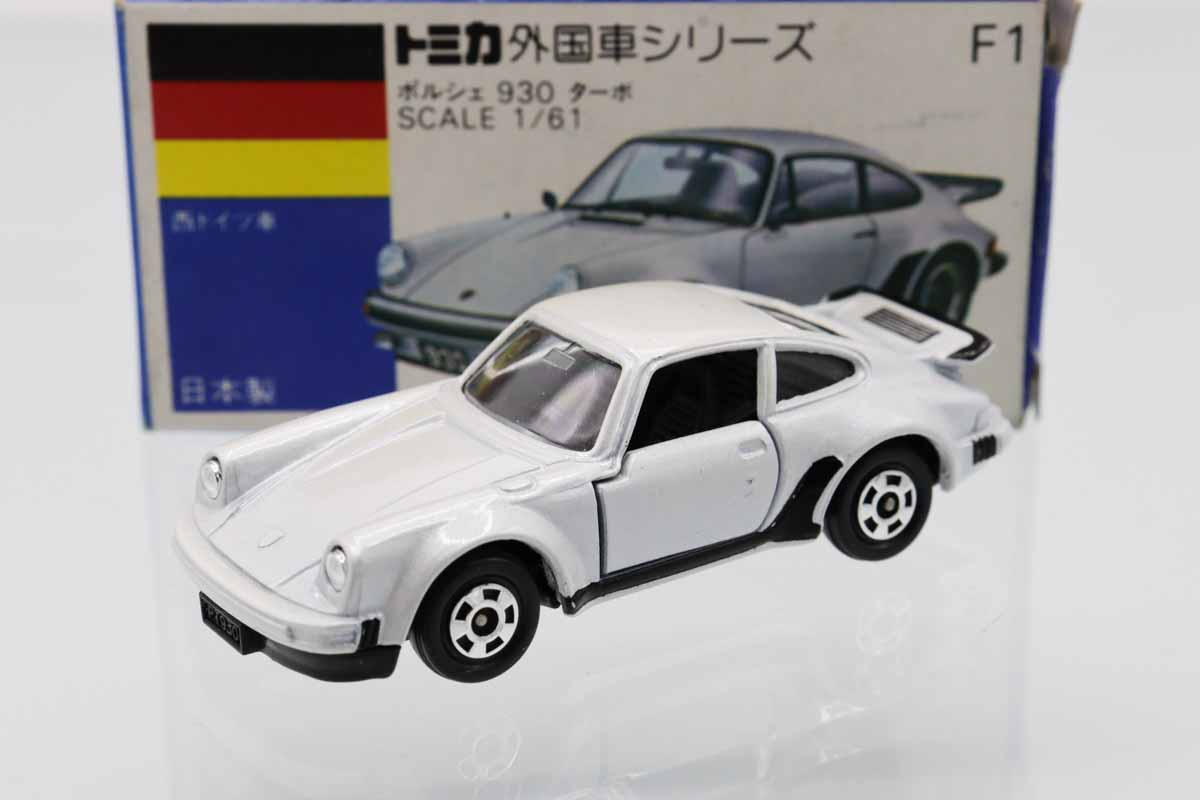 トミカ 青箱★F1★ポルシェ930 ターボ(白) ※左ドア塗装少荒れ・箱スレ、少汚れ・フタ少破れ、爪跡、値札剥がし跡・買取品・現状渡し