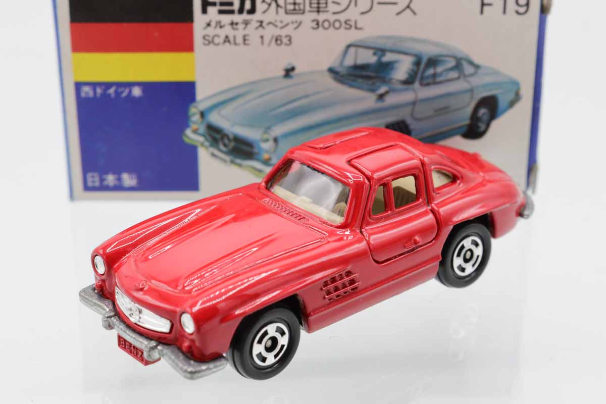 トミカ 青箱★F19★メルセデスベンツ300SL(赤) ※前後エンブレム塗装少剥げ・箱少スレ、ヨレ、汚れ・フタめくれ・買取品・現状渡し